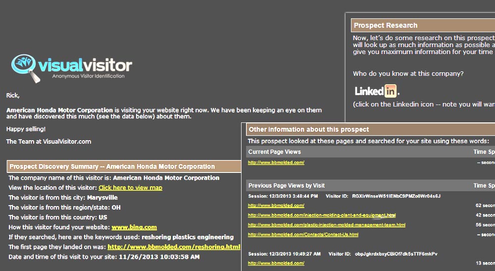 - Additional background and contact information on the visitor.