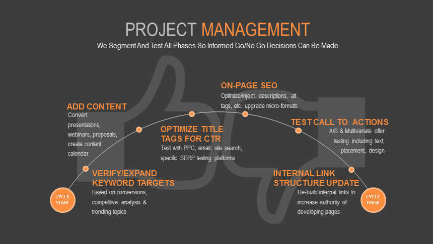 Should you decide to proceed with our proposed program and/or services, we will being our implementation phases on a "go-no-go" basis. These phased steps include safeguards to ensure that our actions are in line with your expectations. We will always setup a staging server or pre-publication approval method, and typically will segment actions in a series of smaller, comparative testing phases to evaluate the effectiveness of changes we are making in your specific environment before rolling them out site-wide. This ensures that actions will help, not degrade, the site's commerce performance.